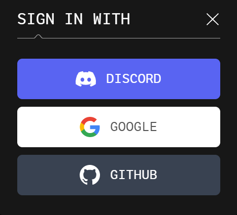 -Có 3 cách đăng nhập bằng Discord , Google, Githud: