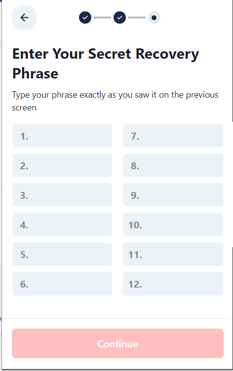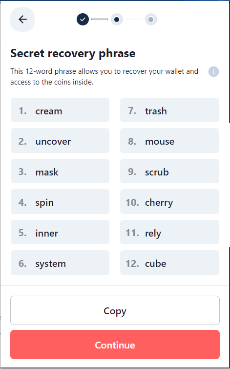 Bước 3: Lưu lại 12 ký tự và chọn Countinue: